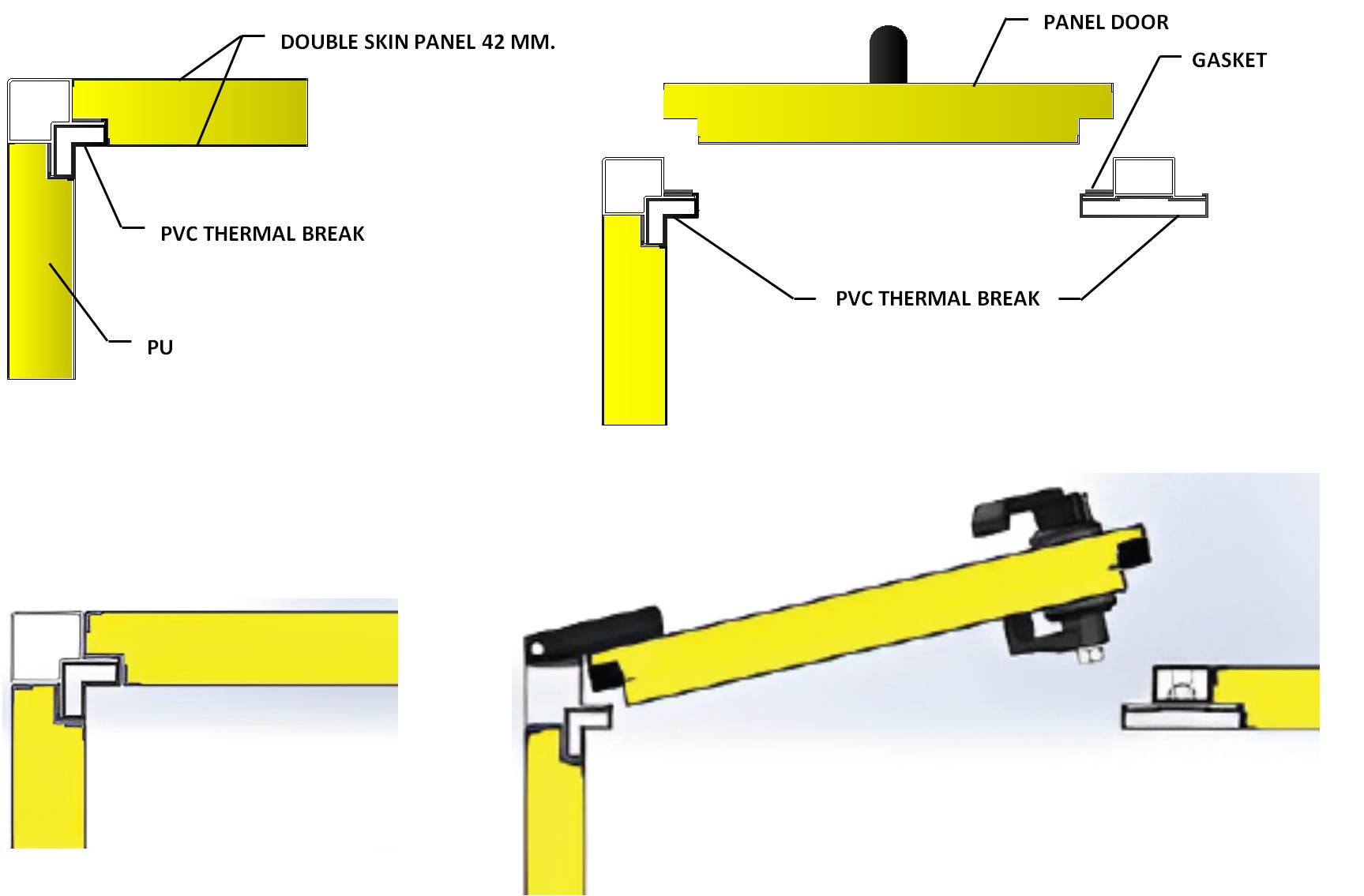 Are constructed of the same material as the fixed panels. The access panel shall be low leak construction with a hex socket compression type latch assembly and large & non-conductive handles for easy removal of the access panel.